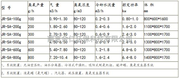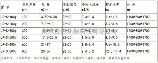 空氣源臭氧發生器參數列表